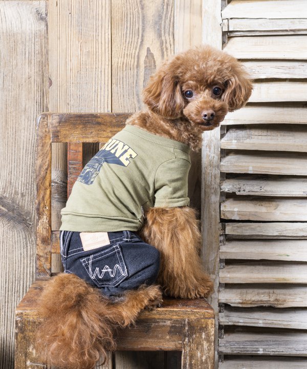 ディテールと素材で遊び、コーディネートやお揃いを楽しむ。生地もボタンも、人間のものと同じ。