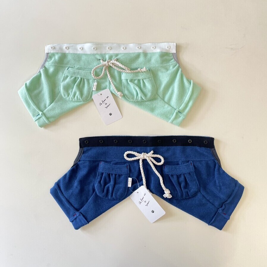 ぷっくりポケットと切りっぱなしの立体感がかわいく、さらっと涼しいパイル素材の元気いっぱいなショートパンツ