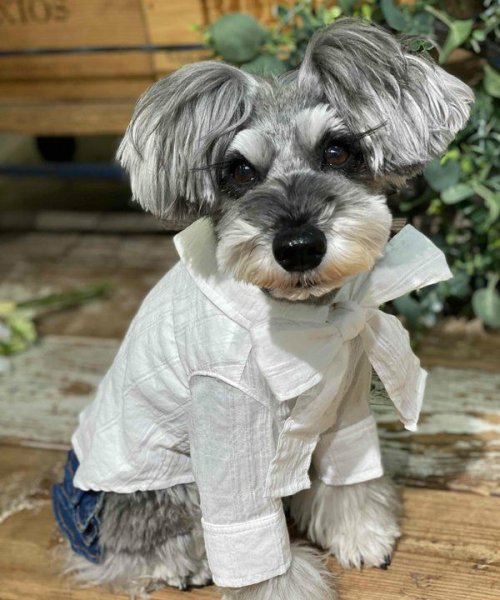 シワになりにくく軽さのあるシャツ生地でわんちゃんにも優しい、リボンボウタイシャツ