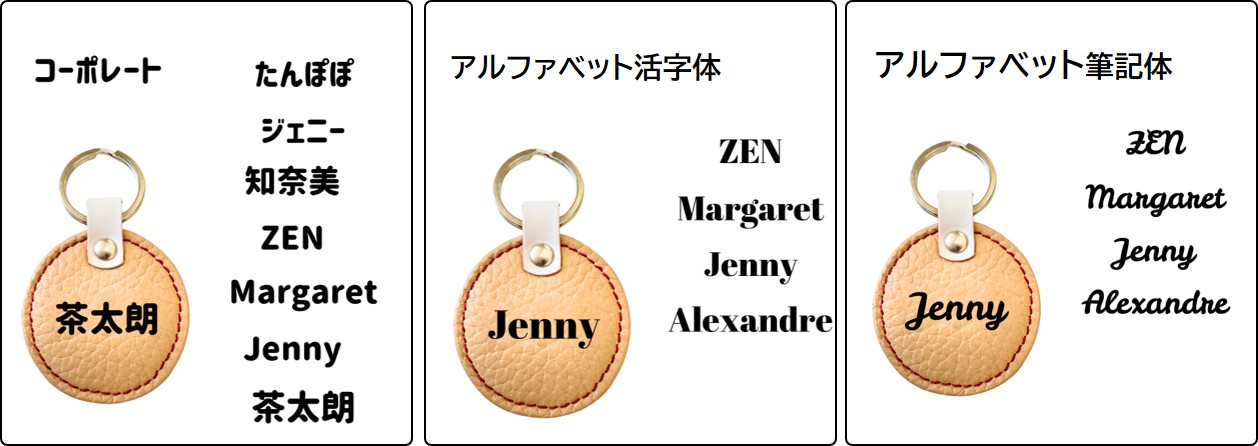 ●おもて面:お名前やチーム名、犬舎名などを入れてお楽しみください。(フォントは下記の3つから選択してください。)