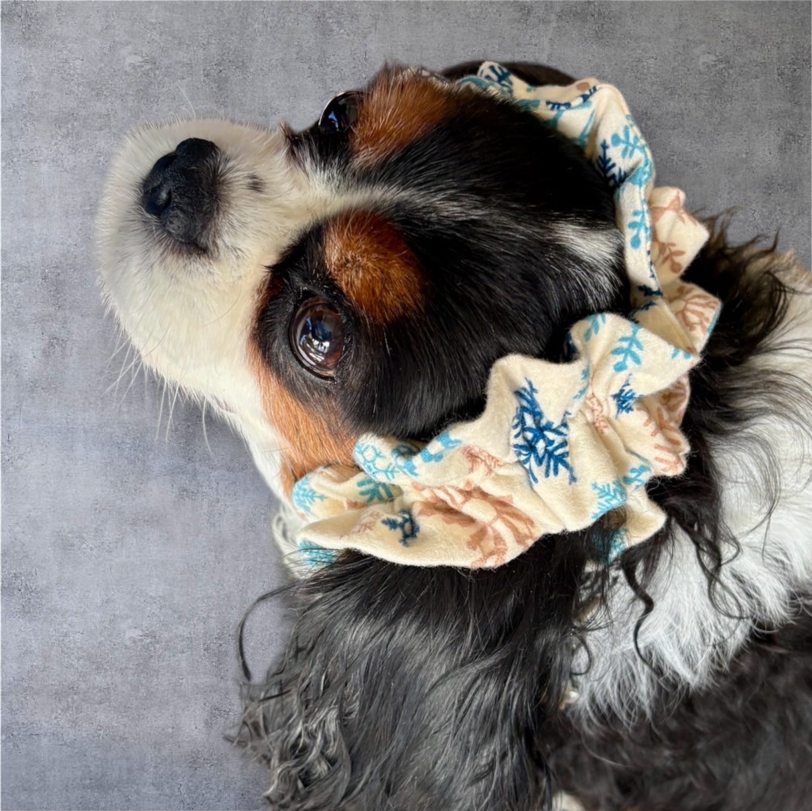 お耳の蒸れ防止に、お水を飲むときやご飯の時にも口まわりにつかないようお耳が浮くので、スヌード替わりとしてもオッケー。