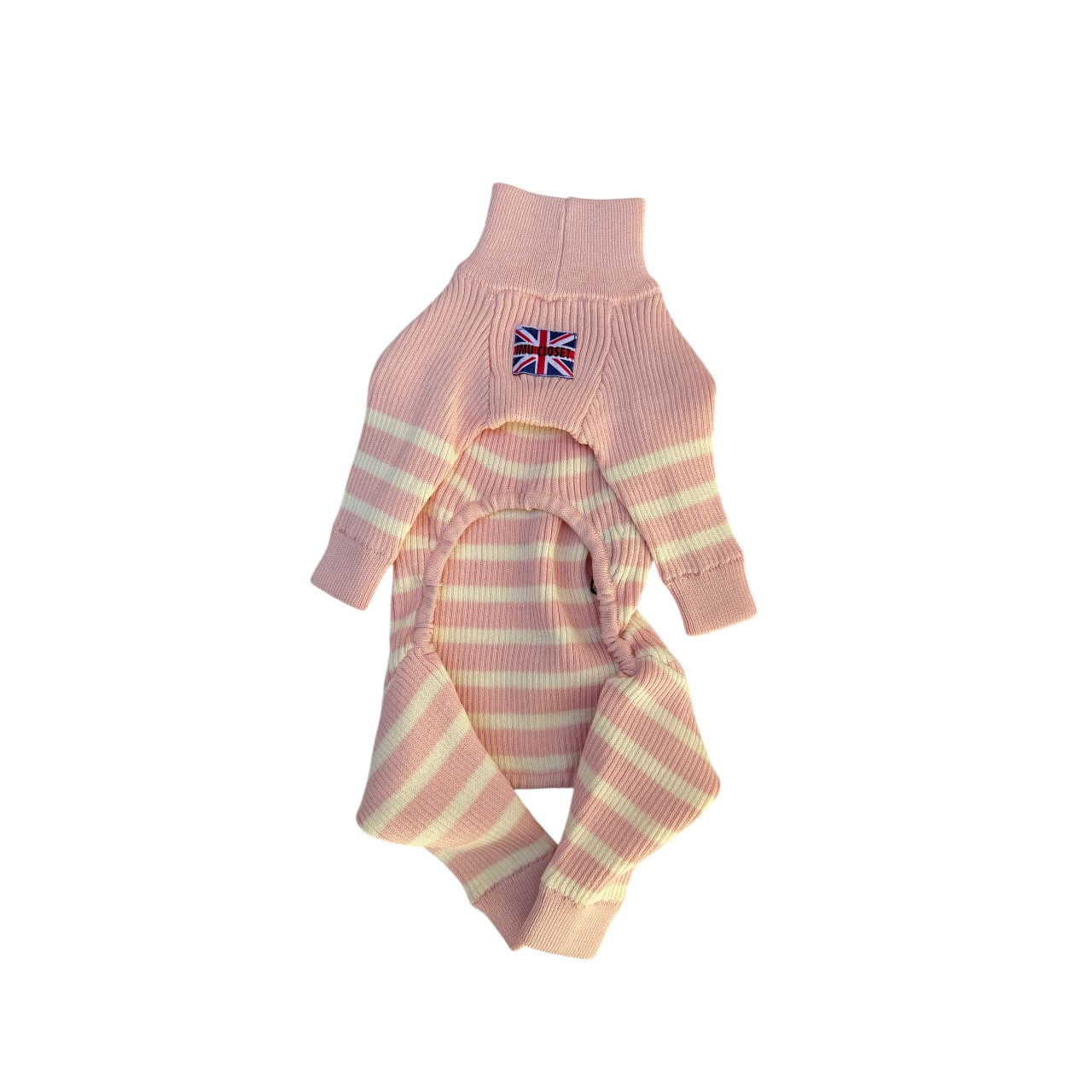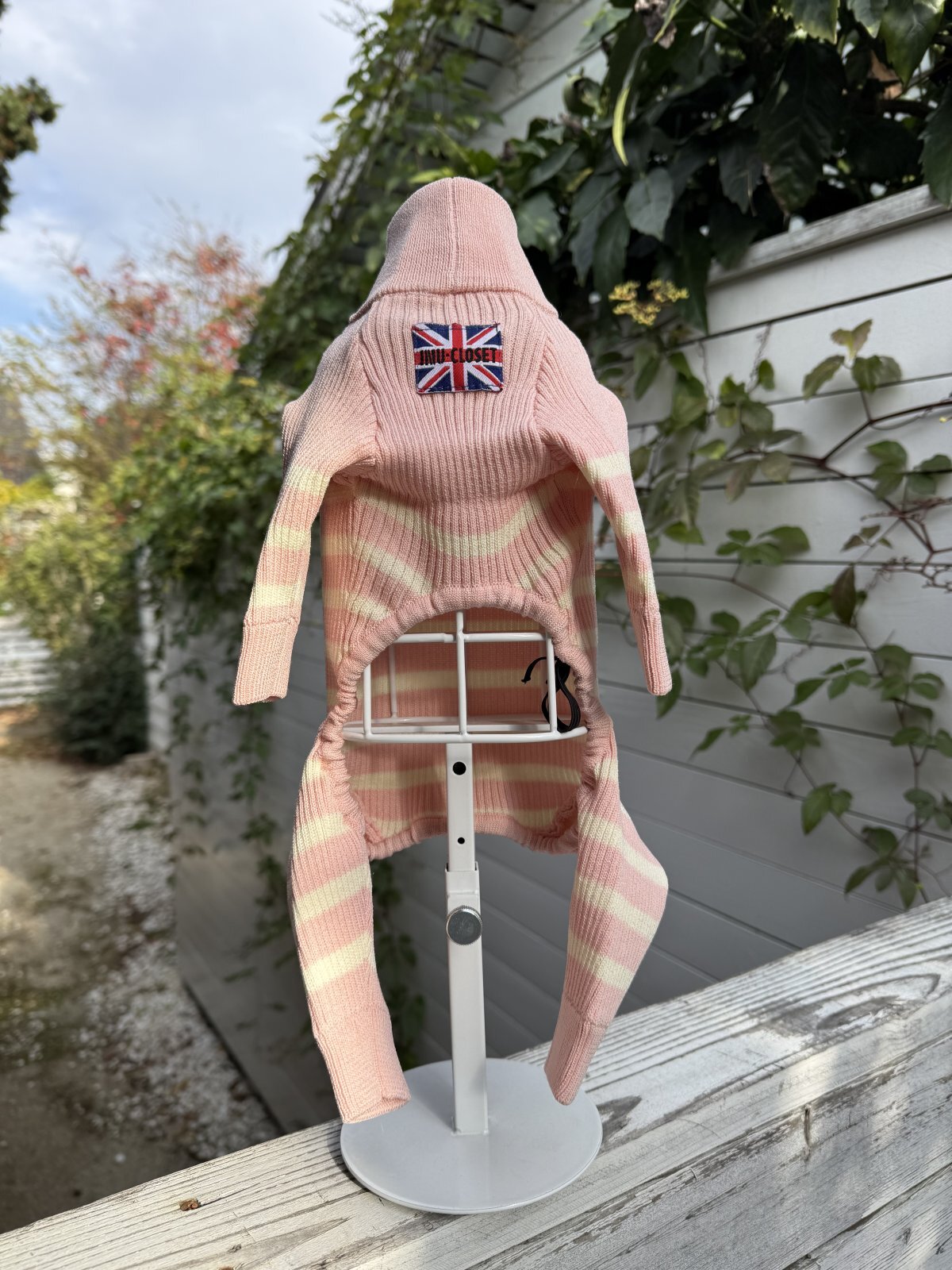 Jenny(7.5キロ)は、キャバスーツはM-S、ニットはMを着用しています。
