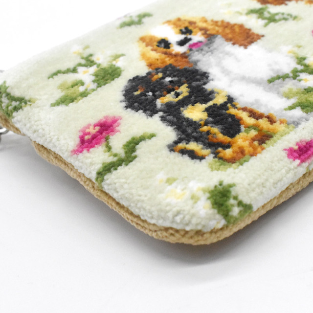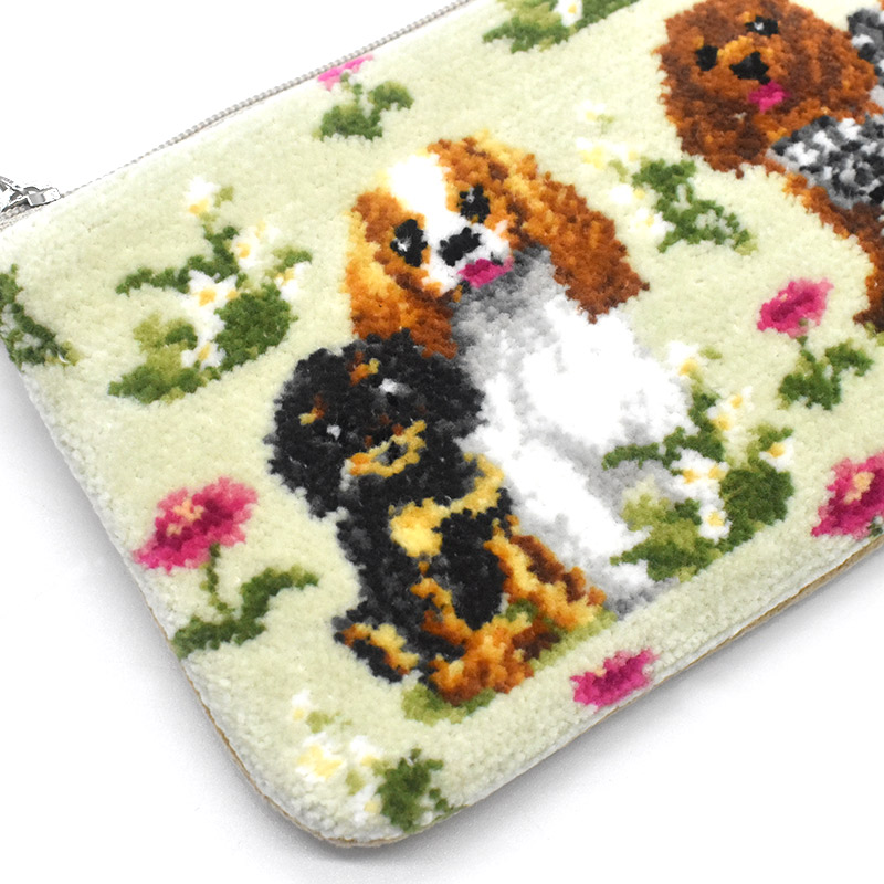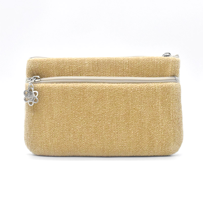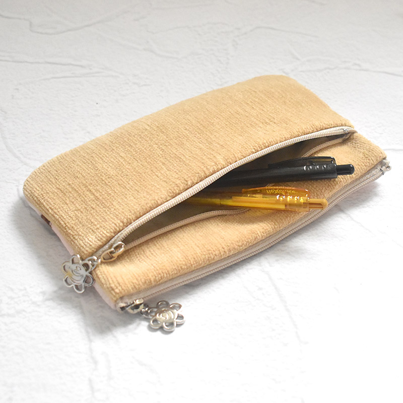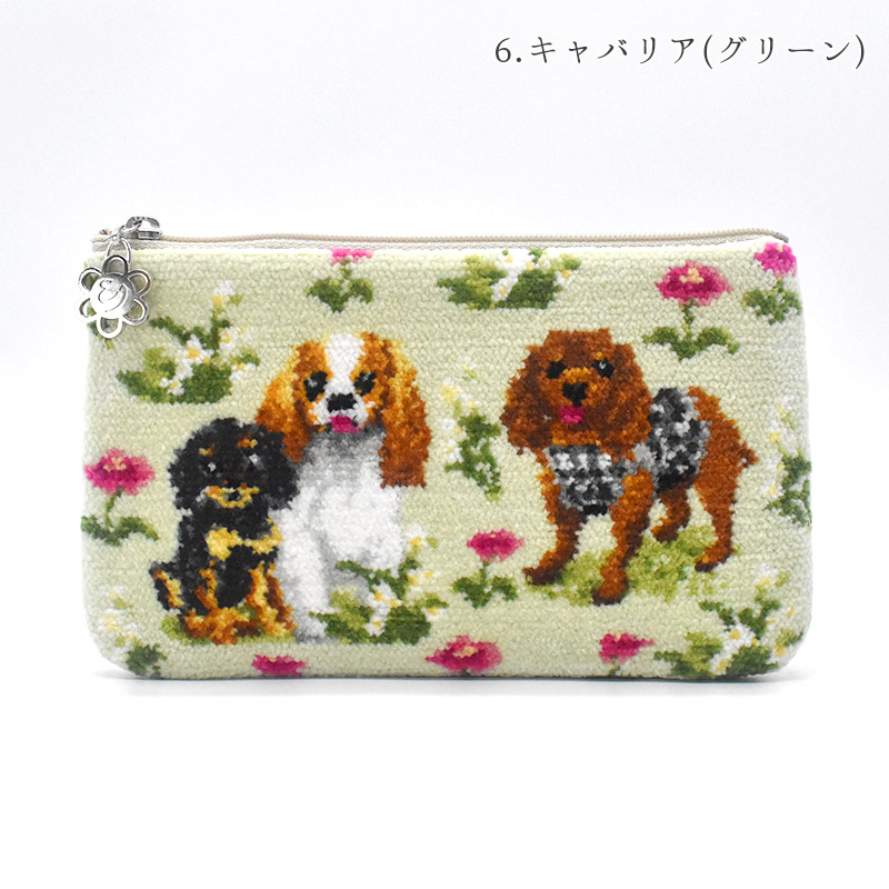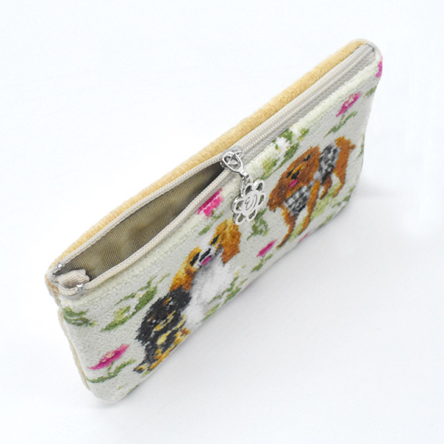 キャバリアペア柄・シェニール織を表面にあしらったフラットポーチ。