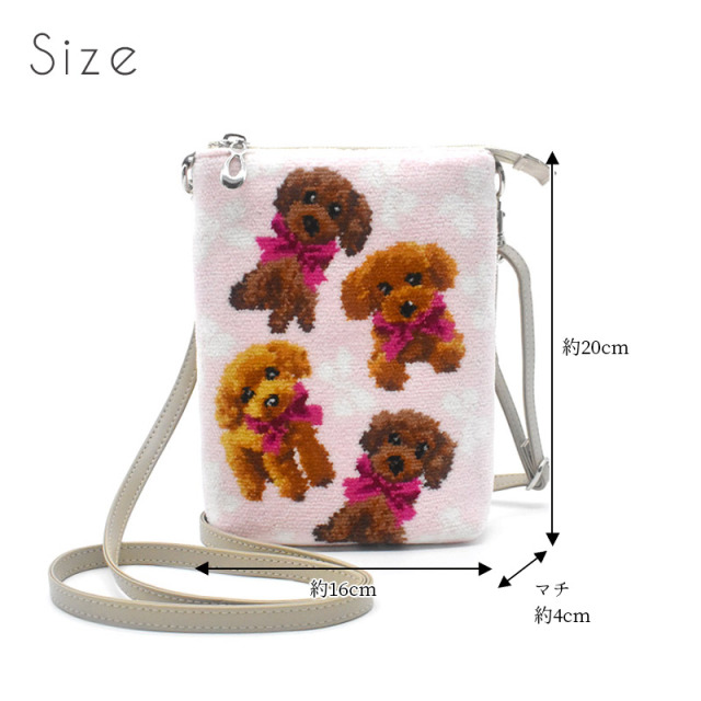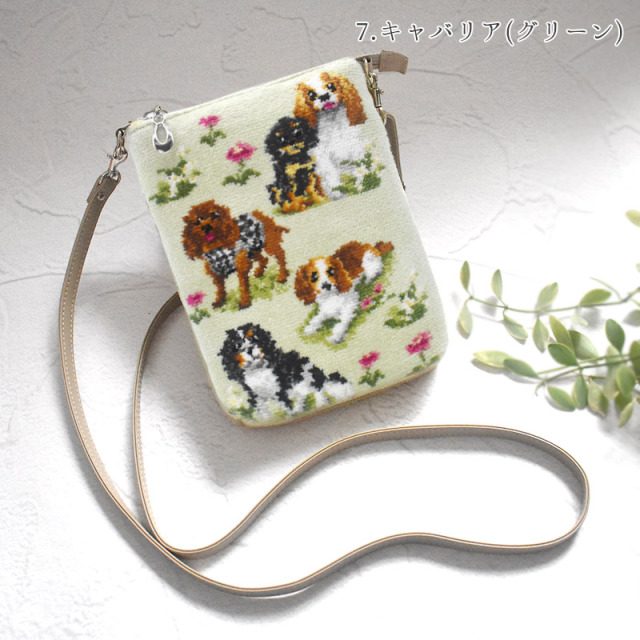キャバリアペア柄シェニール織を表面にあしらい、お出かけはもちろん、お散歩時のポーチとして、またサブバッグとしてもお使い頂けるサコッシュ型ショルダーポーチ。