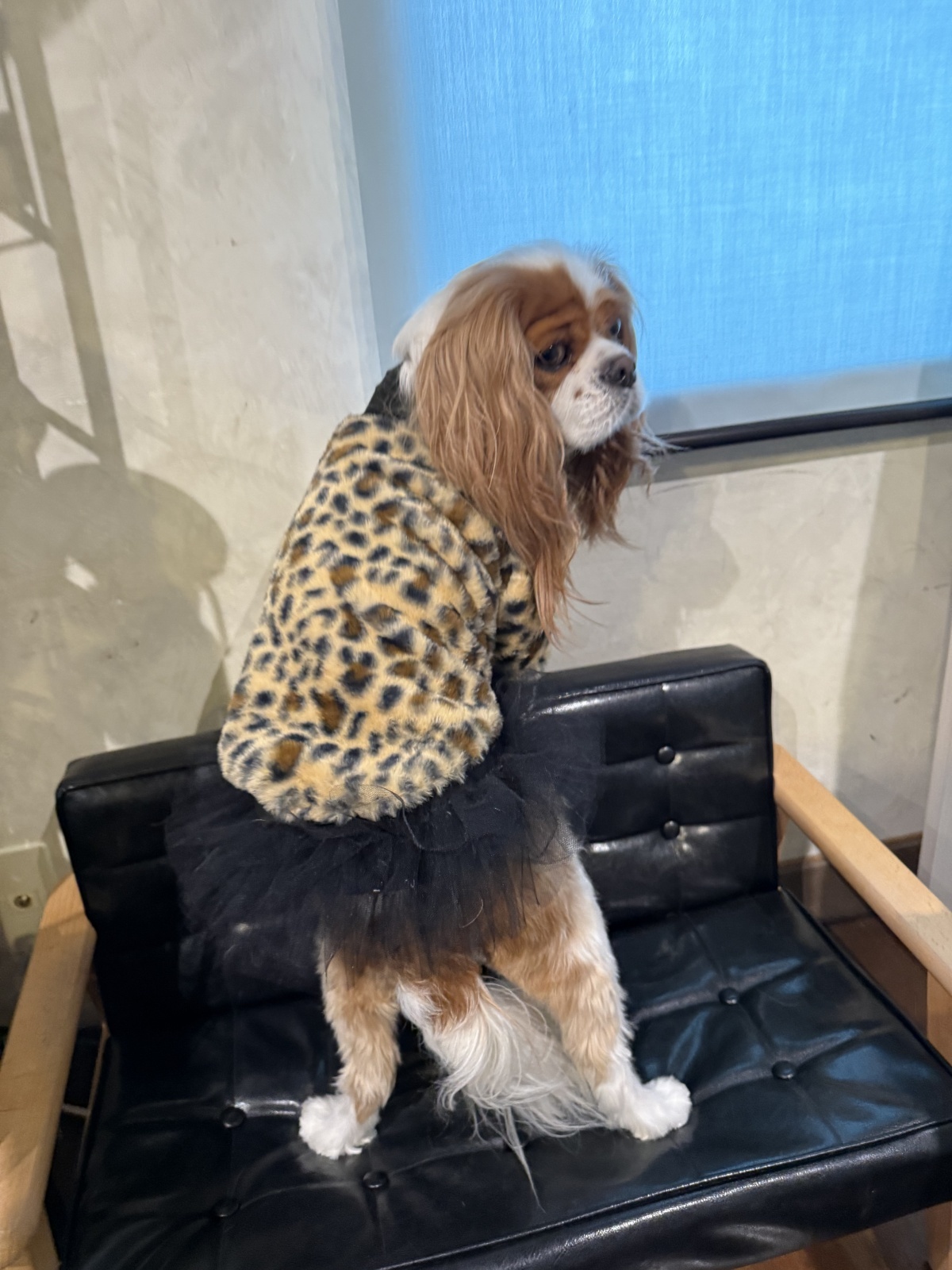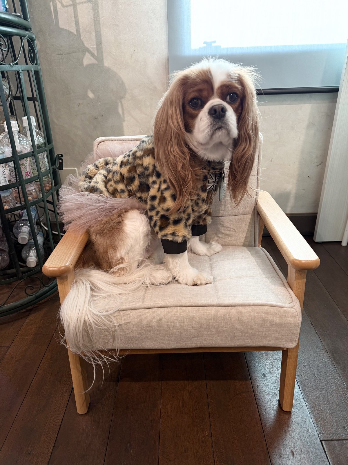 着丈はキャバリア用で少し長めのデザインで、お尻がめくれ上がりにくい仕様になっています。