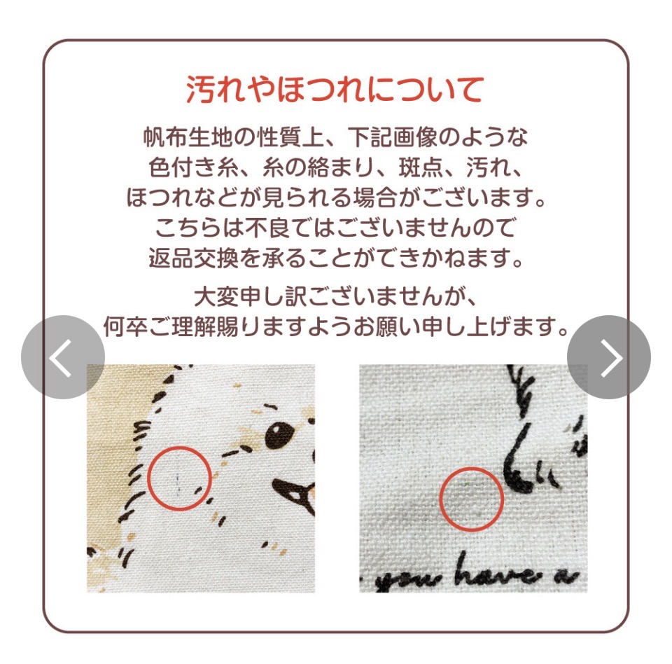 | ・洗濯やクリーニングはお避け下さい。 ・直射日光や蛍光灯に長時間あたると変色する事があ ります。保管には十分にご注意下さい。 ・本製品は染色した素材を使用しております。 水や汗により濡れた状態でのご使用や摩擦により色 落ちや色移行する場合がございます。 ・薄色・淡色の商品と濃色の衣服とのコーディネート はおやめ下さい。色移りする恐れがございます。 万一、色が落ちた場合は、移った物を早めに洗濯を して下さい。 ・鋭利なものを入れたり引っ張ったりしないで下さい。 破れる原因となります。 ・生地の仕様上多少汚れのようなものがある場合がご ざいますがご了承下さい。 |